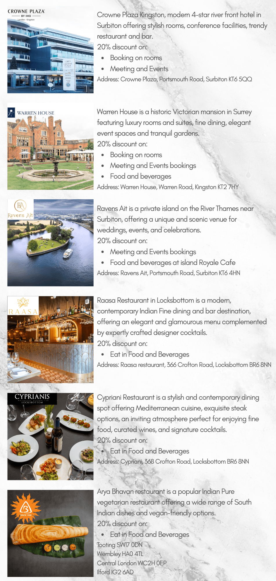 As a River Club member, you can enjoy discounted rates at selected partners. Enquire at reception for your member benefits card.